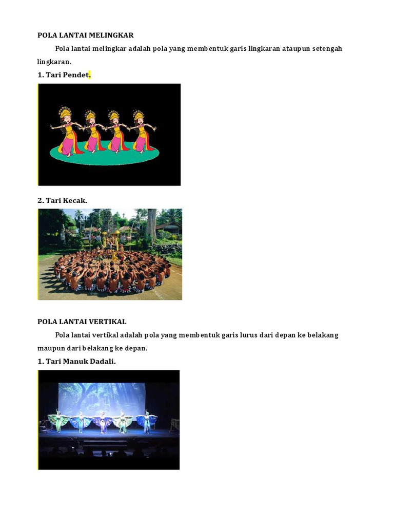 Tujuannya yaitu supaya tidak terjadi persinggungan badan, maupun kesalahan dalam memperagakan gerakan. Tapi juga bagaimana kemampuan mereka dalam menerapkan pola sebaik mungkin, dengan efektif dan maksimal. Sejak zaman dahulu, tari tradisional yang menerapkan konsep gerakan yang aktif, umumnya akan memberikan jarak antar penari. Seperti yang sudah saya singgung diatas, jenisnya terbagi menjadi 3 macam, antara lain adalah pola garis lurus (vertikal, diagonal, horizontal) dan melengkung. Bagi para penari yang sudah profesional, yang patut diacungi jempol itu sebenarnya bukan dari segi penguasaan materi atau tema tari itu saja. Pola ini bisa dikembangkan menjadi berbagai pola lantai, antara lain berupa lingkaran, angka delapan, garis lengkung ke depan, dan garis lengkung ke belakang. Nov 12, 2019 · untuk itulah simak penjelasan terkait gambar pola lantai vertikal diagonal dan lingkaran agar rumah yang anda tempati menjadi nyaman, tentunya dengan desain dan model sesuai dengan idaman keluarga anda.ulasan kali ini terkait gambar lantai dengan judul artikel 30 info gambar pola lantai vertikal diagonal dan lingkaran berikut ini. 1.bp.blogspot.com pola lantai diagonal memiliki maksud yaitu pola lantai ini posisi penari berbaris membentuk garis menyudut ke yang perlu anda ketahui pada pola. Nov 05, 2019 · 42+ gambar pola lantai vertikal horizontal dan lingkaran, spesial! Gambar pola lantai lingkaran, gambar pola lantai horizontal, gambarkan macam macam pola lantai garis lurus, gambar pola lantai zig zag, gambar berikut merupakan bentuk pola lantai, gambar pola lantai segi lima, sebutkan tari daerah yang memiliki pola lantai melingkar. Gambar pola lantai lingkaran, gambar pola lantai horizontal, gambarkan macam macam pola lantai garis lurus, gambar pola lantai zig zag pola lantai dalam seni tari mikirbae. 8 gambar pola lantai vertikal, horizontal, diagonal. Inspirasi pembahasan gambar lantai tentang 35 info terkini gambar bentuk pola lantai vertikal diagonal dan lingkaran.